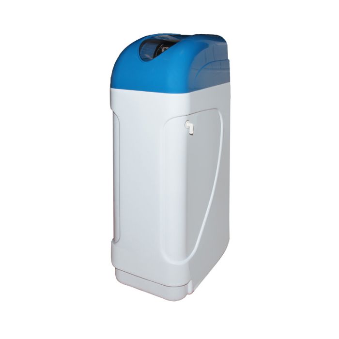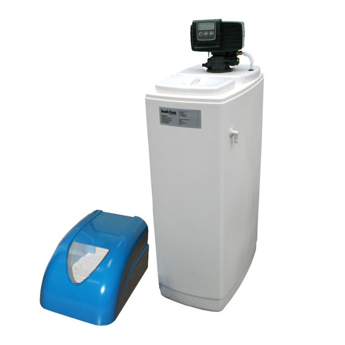 Die KadoSoft Enthärtungsanlage Einfamilienhäuser verfügt über ein hochwertiges Kabinettgehäuse mit abnehmbarem Deckel. In das Gehäuse ist eine korrosionsbeständige GFK-Druckflasche integriert, in der sich hochwertiges Ionenaustauscher-Harz befindet. Zugleich dient das Gehäuse als Regeneriersalzbehälter, in den Sie einen Salzvorrat auffüllen. Aus Salz und Wasser bildet sich dann eine Solelösung, die bei der Regeneration der Anlage durch die Druckflasche mit dem Enthärterharz fließt.