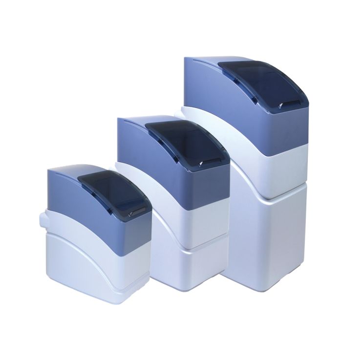 Die Anlagen sind in einen Kabinettbehälter eingebaut und vollautomatisch mengengesteuert Nach Durchlauf der vom Wassermesser erfassten Wassermenge erfolgt eine extrem schnelle Regeneration von maximal 15 Minuten. Danach steht Ihnen sofort wieder Weichwasser zur Verfügung.